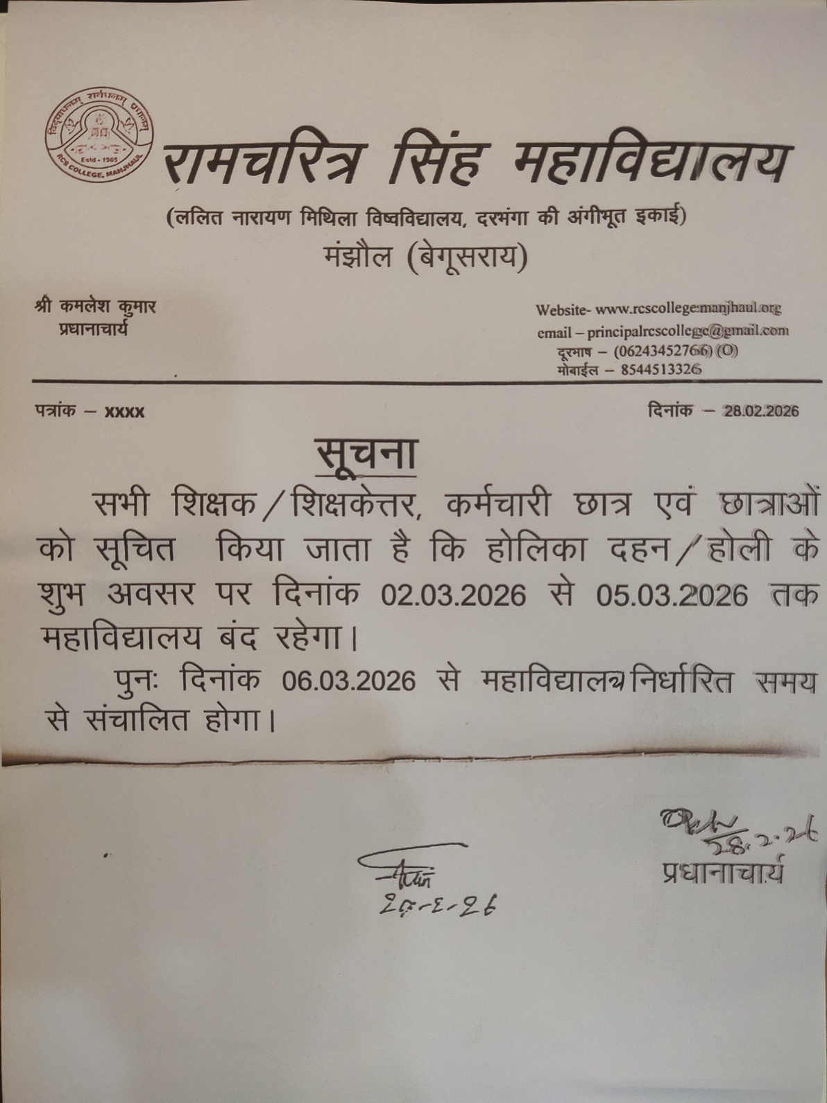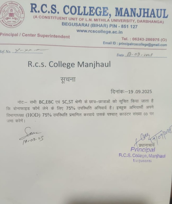 Manjhaul, District-Begusarai, Bihar, 851127.